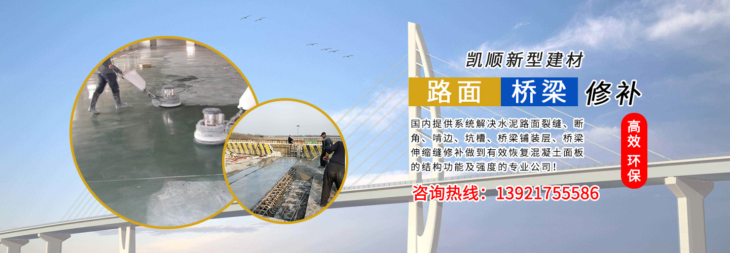 江蘇凱順新型建材有限公司是國內提供系統解決水泥路面裂縫、斷角、啃邊、坑槽、橋梁鋪裝層、橋梁伸縮縫修補做到有效恢復混凝土面板的結構功能及強度的專業公司!為市政工程、高速、國道、省道、縣鄉道路的改造及大修、中修等大型工程提供了快速、高效、環保、經濟系統方案和技術支持!
